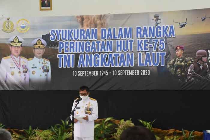 Peringatan Upacara HUT ke-75 TNI Angkatan Laut dipimpin Kepala Staf Angkatan Laut Laksamana TNI Yudo Margono, S.E., M.M., dan disaksikan seluruh jajaran TNI Angkatan Laut seluruh Indonesia secara virtual, termasuk Lantamal VIII.