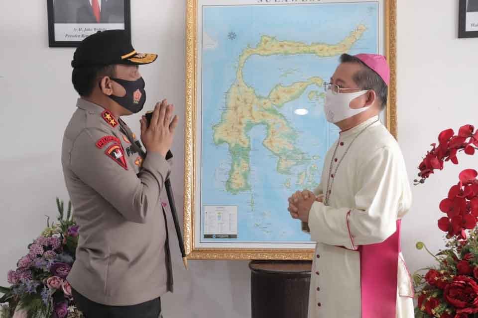Saat tiba di halaman Keuskupan di Jalan Sam Ratulangi Manado, Kapolda dan rombongan disambut langsung oleh Uskup Keuskupan Manado, Mgr. Benedictus Estephanus Rolly Untu, MSC.