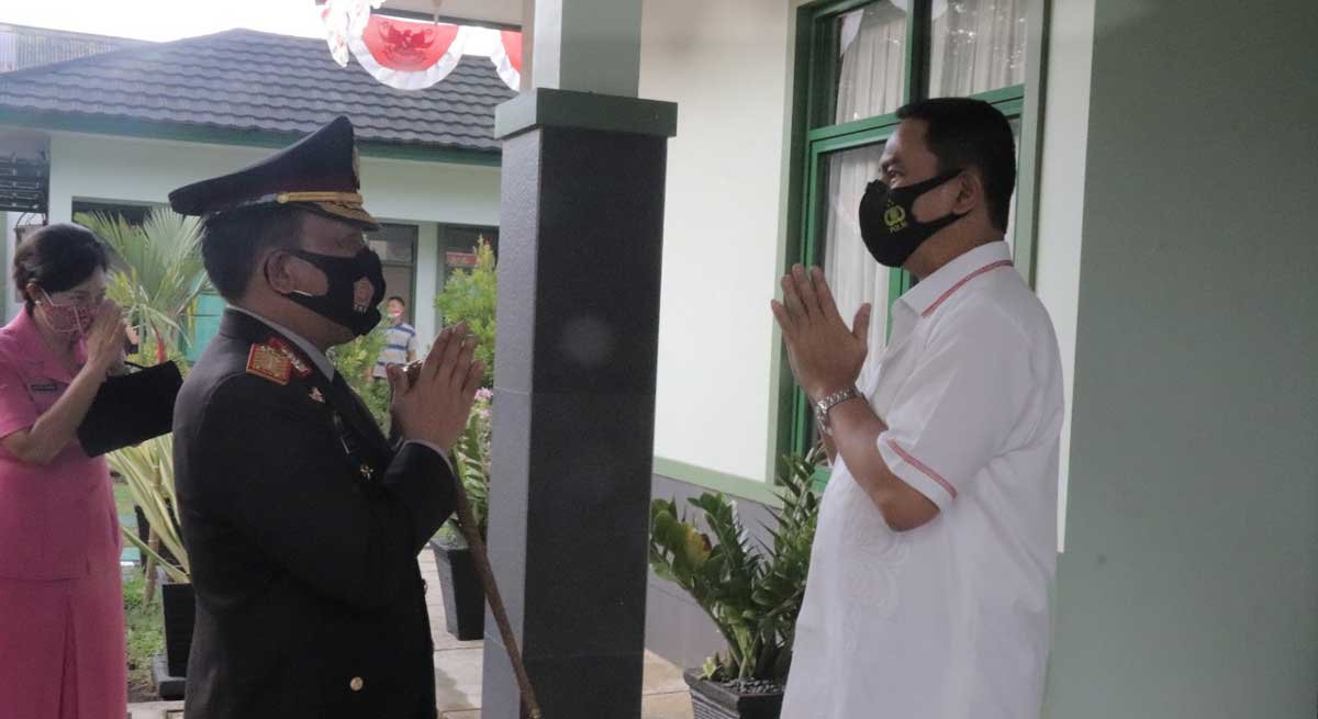 Didampingi sejumlah staf, Kabid Dokkes dan Karumkit Bhayangkara menyampaikan ucapan ulang tahun kepada Karumkit RW Mongisidi.