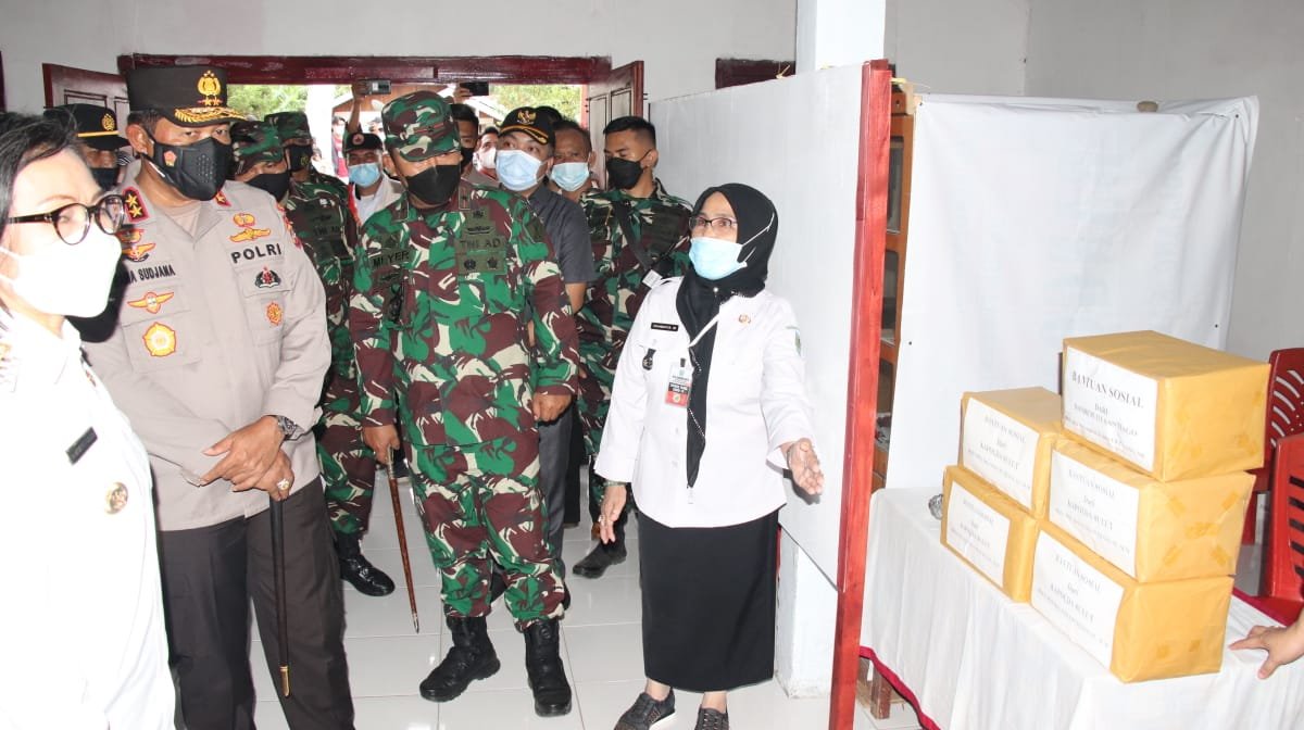Manado, Lintasutara.com – Kapolda Sulawesi Utara (Sulut) Irjen Pol Nana Sudjana bersama Danrem 131/Santiago Brigjen TNI Prince Meyer Putong, meninjau Posko Pemberlakuan Pembatasan Kegiatan Masyarakat (PPKM) Berskala Mikro, di Desa Bangomolunow, Kecamatan Bolaang, Kabupaten Bolaang Mongondow (Bolmong), Rabu (14/07/2021) sore.