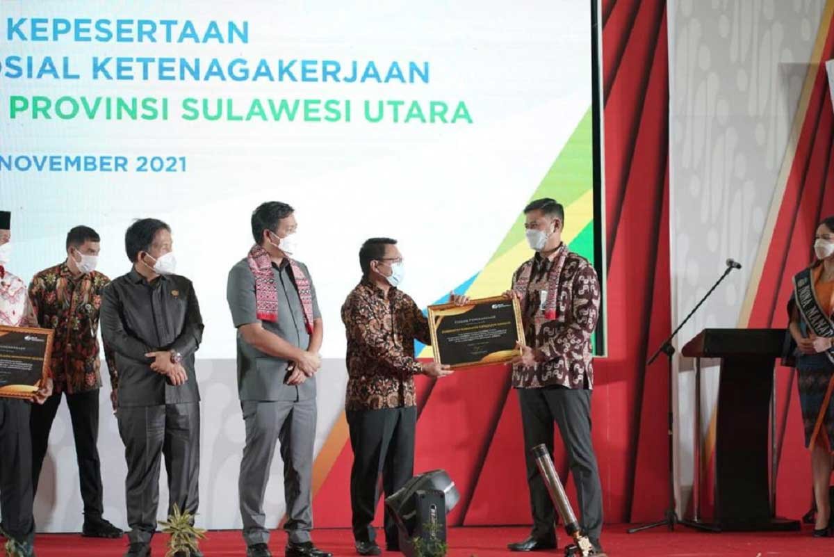 Bertempat di ballroom salah satu hotel di Kota Manado, mewakili Bupati Kabupaten Kepulauan Sangihe Jabes Ezar Gaghana, Pangandaheng menerima penghargaan dari Badan Penyelanggara Jaminan Sosial (BPJS) Ketenagakerjaan, Kamis (4/10/2021).