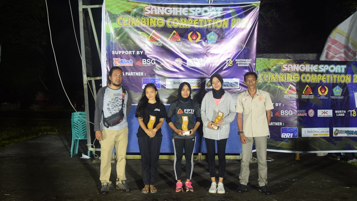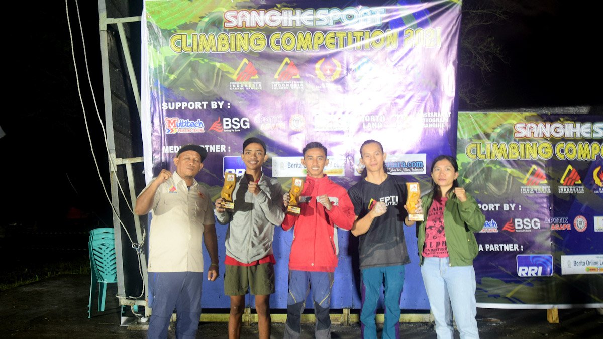 Sangihe, Lintasutara.comSangihe Sport Climbing Competition ( SSCC ) 2021 di Venue Wall Climbing Gelora Santiago akhirnya usai digelar dengan masing-masing pemenang ditiap kategori yang diperlombakan ; Lead Pelajar Putra Lokal, Lead Umum Putra dan Lead Umum Putri, Sabtu (18/12/2021).