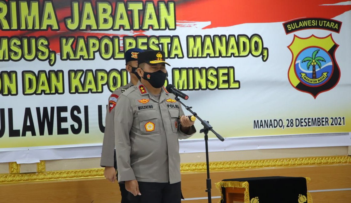 Hal tersebut disampaikan Irjen Pol Mulyatno sesaat usai memimpin upacara serah terima jabatan (sertijab) Karo SDM, Dirreskrimsus, Kapolresta Manado, Kapolres Tomohon, dan Kapolres Minahasa Selatan (Minsel), Selasa (28/12/2021) pagi, di ruang Tribrata Mapolda Sulut.