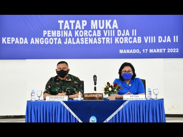 Tatap muka yang diikuti secara langsung anggota Jalasenastri yang berada di Kota Manado dan secara virtual bagi anggota Jalasenastri yang berada di luar Kota Manado Danlantamal VIII Disertai Ketua Korcab VIII DJA II Ny. Tirta I Wayan Ariwijaya .