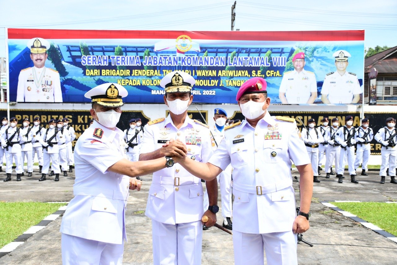 Sebelum melaksanakan serah terima jabatan bertempat di ruang Lobby Mako Lantamal Vlll didahului laporan komando oleh Komandan Lantamal Vlll Brigjen TNI (Mar) I Wayan Ariwijaya, S.E., CFrA., kepada Panglima Komando Armada (Pangkoarmada) II Laksamana Muda TNI Dr. Iwan Isnurwanto, S.H., M.A.P., M.Tr (Han) dihadiri para Danlantamal jajaran Koarmada II dan Kolonel Laut (P) Nouldy J. Tangka.