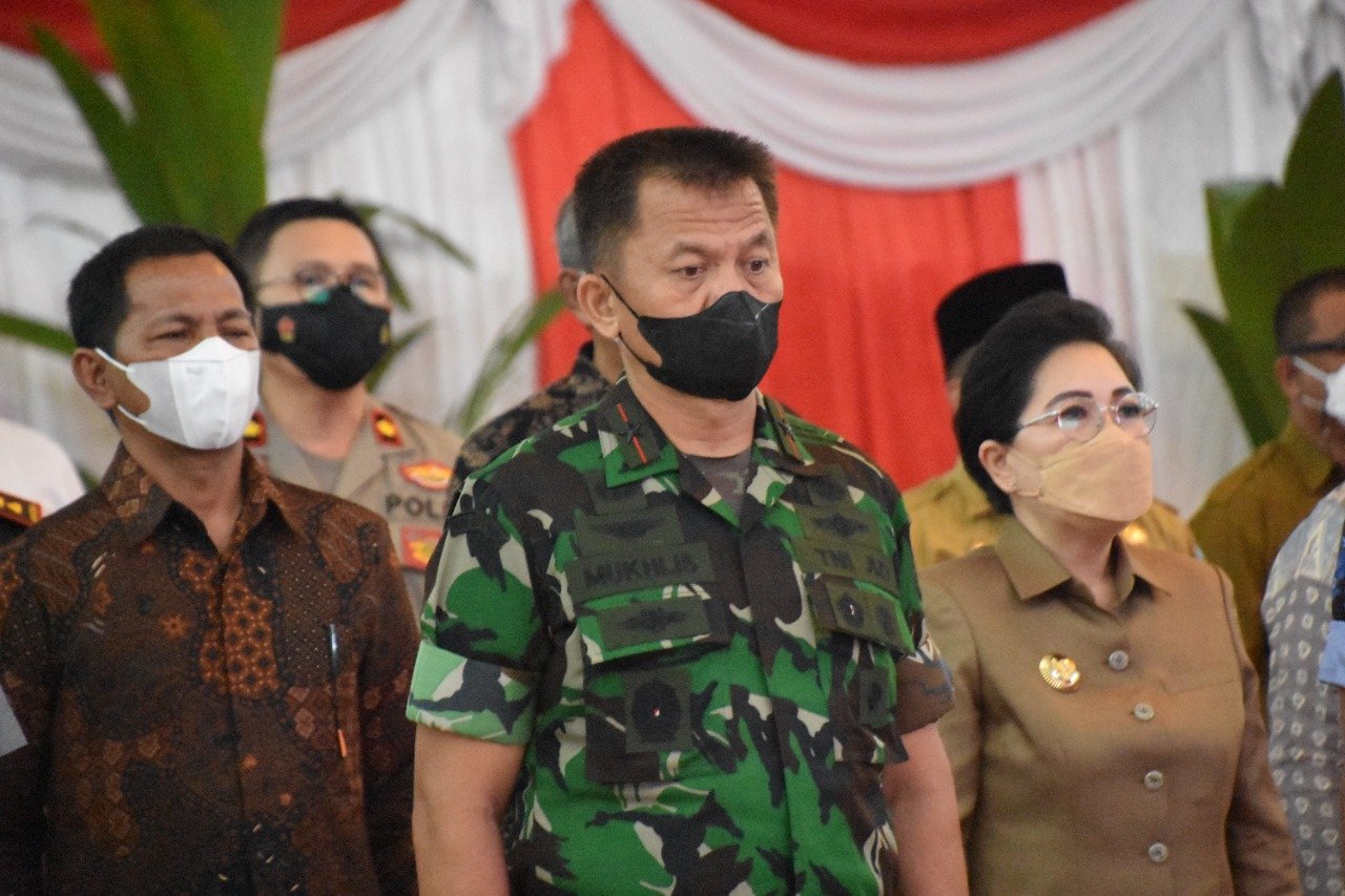 Manado, Lintasutara.com — Danrem 131/Santiago Brigjen TNI Mukhlis, S.A.P., M.M., Hadiri kunjungan kerja Menteri Koordinator Bidang Politik, Hukum dan Keamanan (Menko Polhukam) Mahfud MD, dan Menteri Dalam Negeri (Mendagri) Muhammad Tito Karnavian di Aula Mapalus, Kantor Gubernur Sulut, Senin (23/5/2022).