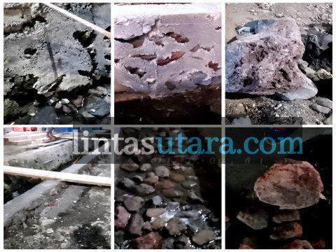 Dari hasil investigas awak media Lintasutara.com, pekerjaan tersebut diduga banyak menggunakan batu mudah keropos. Padahal dalam ketentuan pekerjaan susunan batu harus menggunakan batu solid.