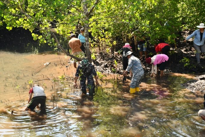 Manado, Lintasutara.com — Dalam rangka menyambut Hari Mangrove Sedunia yang jatuh pada 26 Juli 2022 mendatang, Pangkalan Utama TNI AL (Lantamal) VIII melalui Staf Potensi Maritim (Spotmar) Lantamal VIII mengajak masyarakat untuk menamam mangrove. Jumat (22/7/2022).