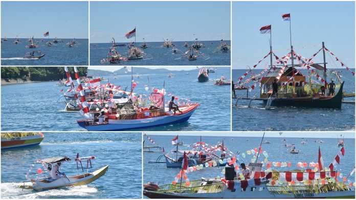 Puluhan perahu-pun tumpah ruah di Teluk Petta Tabukan Utara, mengikuti lomba perahu hias dan fashion show perahu.