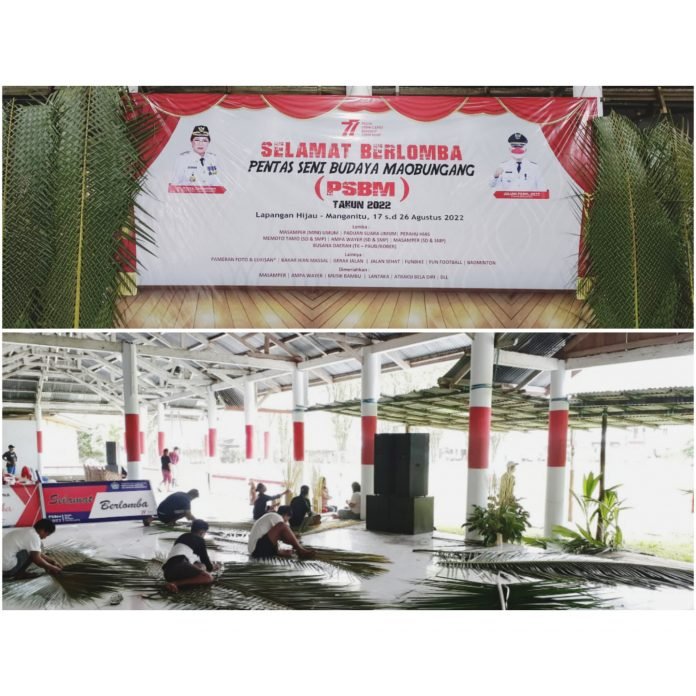 Manganitu, Lintasutara.com- Pentas Seni Budaya Maobungang atau PSBM 2022 siap digelar berlokasi di tribun Kecamatan Manganitu Kabupaten Kepulauan Sangihe, Rabu (17/08) esok.