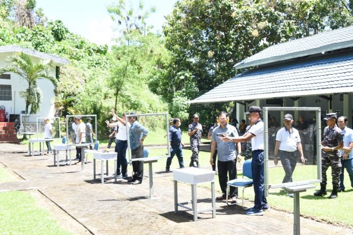 Danlantamal VIII Latihan Menembak Dengan GM PT PLN Suluttenggo