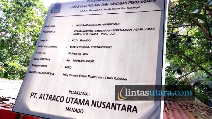 Manado, Lintasutara.com — Pekerjaan pembangunan / pemugaran peremajaan permukiman yang dikerjakan oleh PT. Altraco Utama Nusantara dengan nomor kontrak D.04/PERKIM/04/KONTR/VIII/2022 yang sumber dananya berasal dari APBD berjumlah Rp.15.085.017.000.- (lima belas miliar delapan puluh lima juta tujuh belas ribu rupiah) yang antara lain pengaspalan Hot Mix di jalan perum liwas permai dikerjakan kerjakan tidak sesuai SOP (Asal jadi).