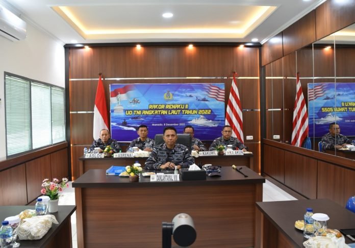 Manado, Lintasutara.com — Komandan Pangkalan Utama TNI AL (Danlantamal) VIII Laksamana Pertama TNI Nouldy J. Tangka, CHRMP., mengikuti Rapat Koordinasi Perencanaan dan Keuangan (Rakor Renaku) II Unit Organisasi (UO) TNI AL Tahun 2022 secara virtual dari Ruang Rapat Markas Komando Lantamal VIII, Kamis, (8/12/2022).