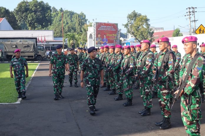 Apel gelar pasukan yang dipimpin Asisten Operasi Komamdan Lantamal VIII Kolonel Laut (P) Dwi Yoga Pariyadi, M.Tr.Hanla., M.M., CTMP., tersebut diikuti gabungan Prajurit Lantamal VIII bersama Prajurit Batalyon Marinir Pertahanan Pangkalan (Yonmarhanlan) VIII Bitung.
