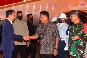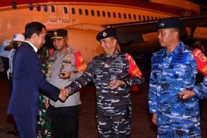 Manado, Lintasutara.com — Komandan Pangkalan Utama TNI AL (Danlantamal) VIII Laksamana Pertama TNI Nouldy J. Tangka., mendampingi Gubernur Sulawesi Utara (Sulut) Olly Dondokambey, S.E., menyambut kedatangan Presiden RI Ir. H. Joko Widodo di Bandara Internasional Sam Ratulangi, Manado, Rabu (18/1/2023).