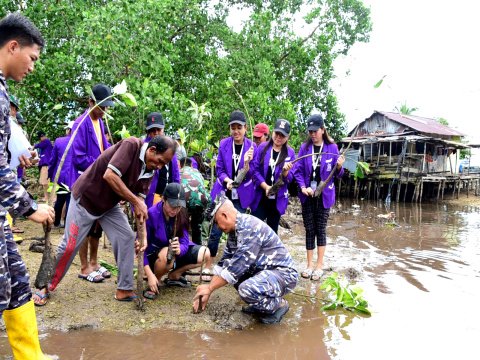 Kali ini Desa Kalinaun menjadi sasaran penanaman 3000 mangrove, Jumat (17/2/2023).