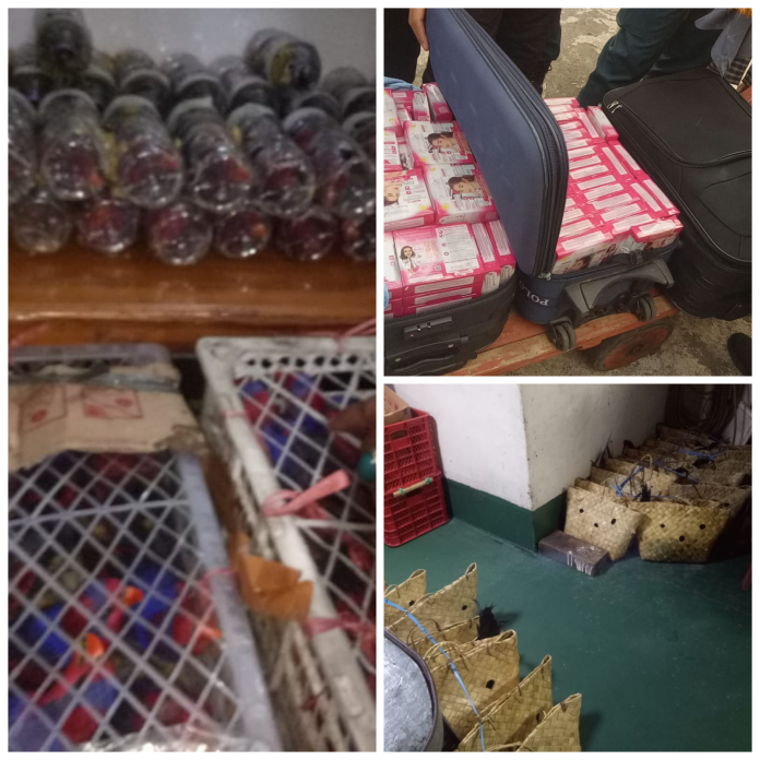 Barang yang diduga ilegal tersebut berupa skin care Brilliant yang tidak memiliki ijin dari Badan Pengawasan Obat dan Makanan (Bpom) serta ayam yang tidak memiliki dokumen-dokumen yang berasal dari philipina.