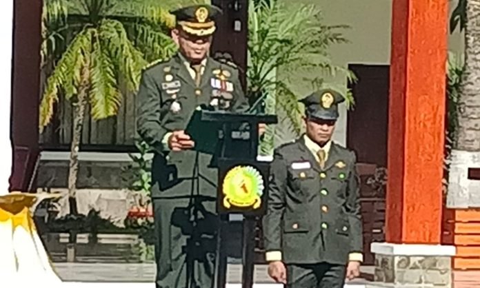 Manado, Lintasutara.com — Kepala Staf Korem (Kasrem) 131/Santiago Kolonel Inf Yarnedi Mulyadi S.I.P., M.H memimpin upacara dalam rangka Hari Pahlawan Tahun 2023 di lapangan Makorem 131/Stg Jalan Sam Ratulangi No.33, Wenang Utara,Kota Manado, Jum’at (10/11/2023).