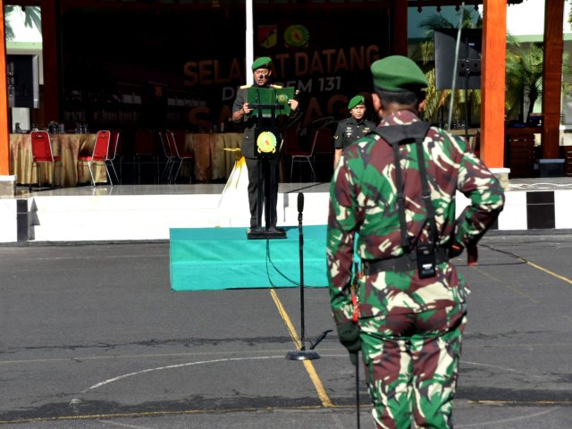 Danrem 131/Santiago saat membacakan amanat Kepala Staf Angkatan Darat (Kasad) Jenderal TNI Maruli Simanjuntak, M.Sc. menyampaikan Hari Juang TNI AD merupakan momentum penting untuk mengenang perjuangan para pahlawan yang telah rela mengorbankan jiwa dan raganya demi mempertahankan kemerdekaan dan kedaulatan bangsa Indonesia.