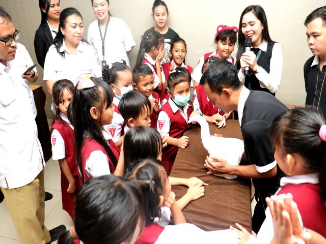 Acara berlangsung seru, tidak lupa diselingi games dan hadiah. Demo Napkin and Towel art dibawahkan oleh 2 staff dari Housekeeping dan dari F&B Service department. Total ada 5 karakter yang didemokan yaitu dinosaurus, lilin, teratai, kapal pinisi dan mawar. Acara ditutup dengan ucapan terima kasih dari guru SDN 11 Manado dan pemberian souvenir untuk semua peserta dan guru.