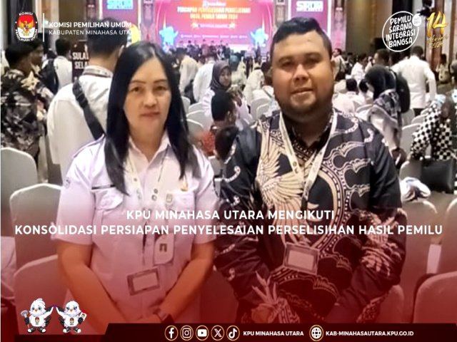 Minut, Lintasutara.com — Komisi Pemilihan Umum (KPU) Minahasa Utara mengikuti konsolidasi Persiapan Penyelesaian Perselisihan Hasil Pemilu Tahun 2024 di Jakarta 31 Januari sampai dengan 2 Februari 2024.