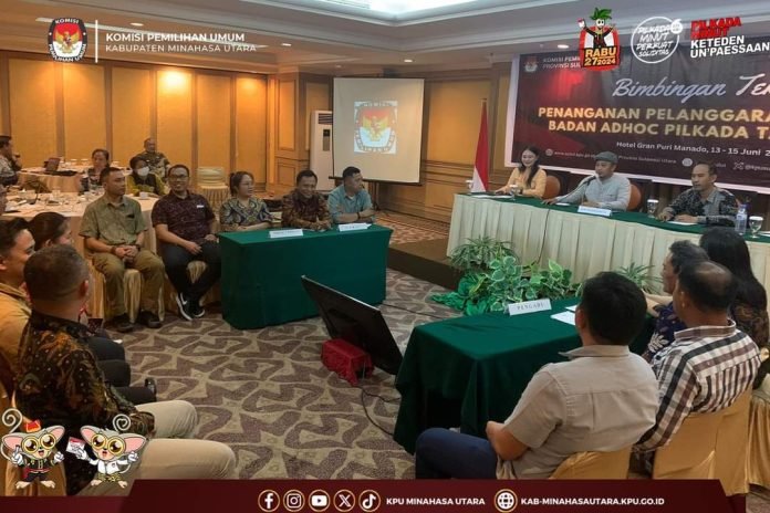 Minut, Lintasutara.com — KPU Kabupaten Minahasa Utara (KPU Minut) mengikuti Bimbingan Teknis Penanganan Pelanggaran Kode Etik Badan Adhoc Pilkada Tahun 2024, Kamis (13/6/2024) di Kota Manado.
