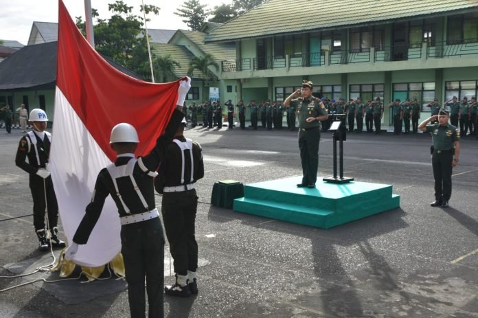 Manado, Lintasutara.com — Danrem 131/Santiago Brigjen TNI Martin Susilo M.Turnip, S.H., M.H., pimpin upacara bendera 17-an bulan Juni 2024 di lapangan Makorem 131/Santiago , Jl. Sam Ratulangi, Kecamatan Wenang, Kota Manado, Rabu. (19/06/2024).