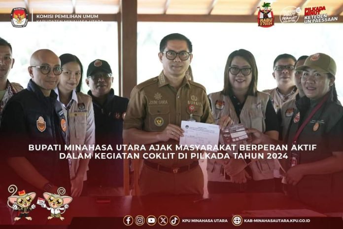 Minut, Lintasutara.com — Komisi Pemilihan Umum Kabupaten Minahasa Utara, melalui Petugas Pemutakhiran Data Pemilih (Pantarlih) melaksanakan kegiatan Pencocokan dan Penelitian (Coklit) di Kediaman Joune Ganda, Bupati Minahasa Utara pada hari Selasa (25/06/2024).