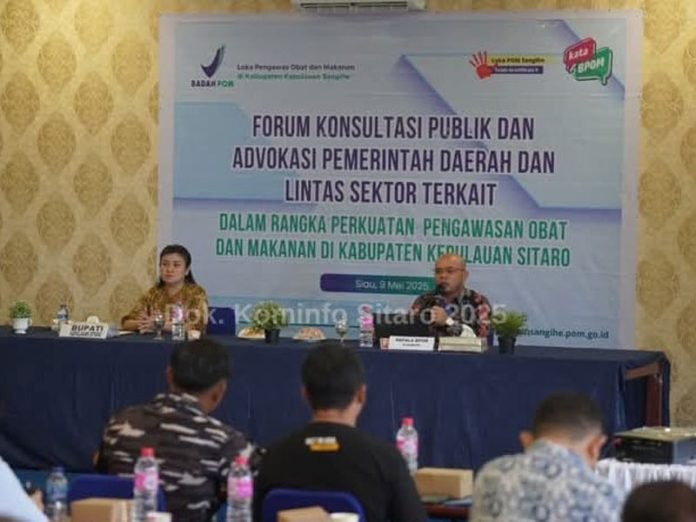 Sitaro, Lintasutara.com – Loka Pengawas Obat dan Makanan (POM) Kabupaten Kepulauan Sangihe, bekerja sama dengan Pemerintah Daerah Kabupaten Kepulauan Siau Tagulandang Biaro (Sitaro) serta berbagai pemangku kepentingan menggelar Forum Konsultasi Publik dan Advokasi Pemerintah Daerah dan Lintas Sektor dalam rangka penguatan pengawasan obat dan makanan di Kabupaten Kepulauan Sitaro.