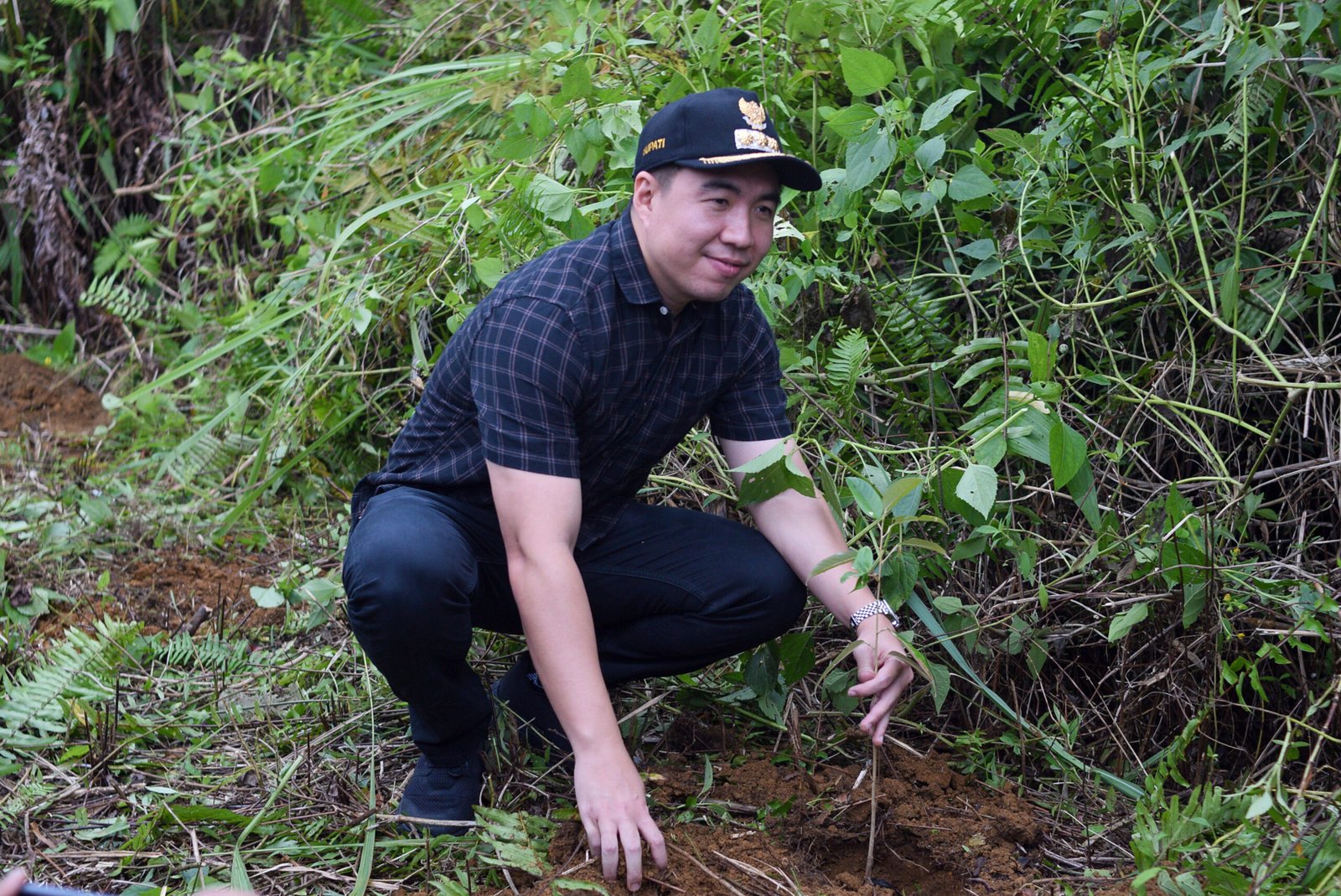 Bupati Kepulauan Sangihe, Michael Thungari Melakukan Penanaman Pohon di Area Pembangunan Poros Jalan Lenganeng – Bowongkulu (Foto : Gerald Kobis)