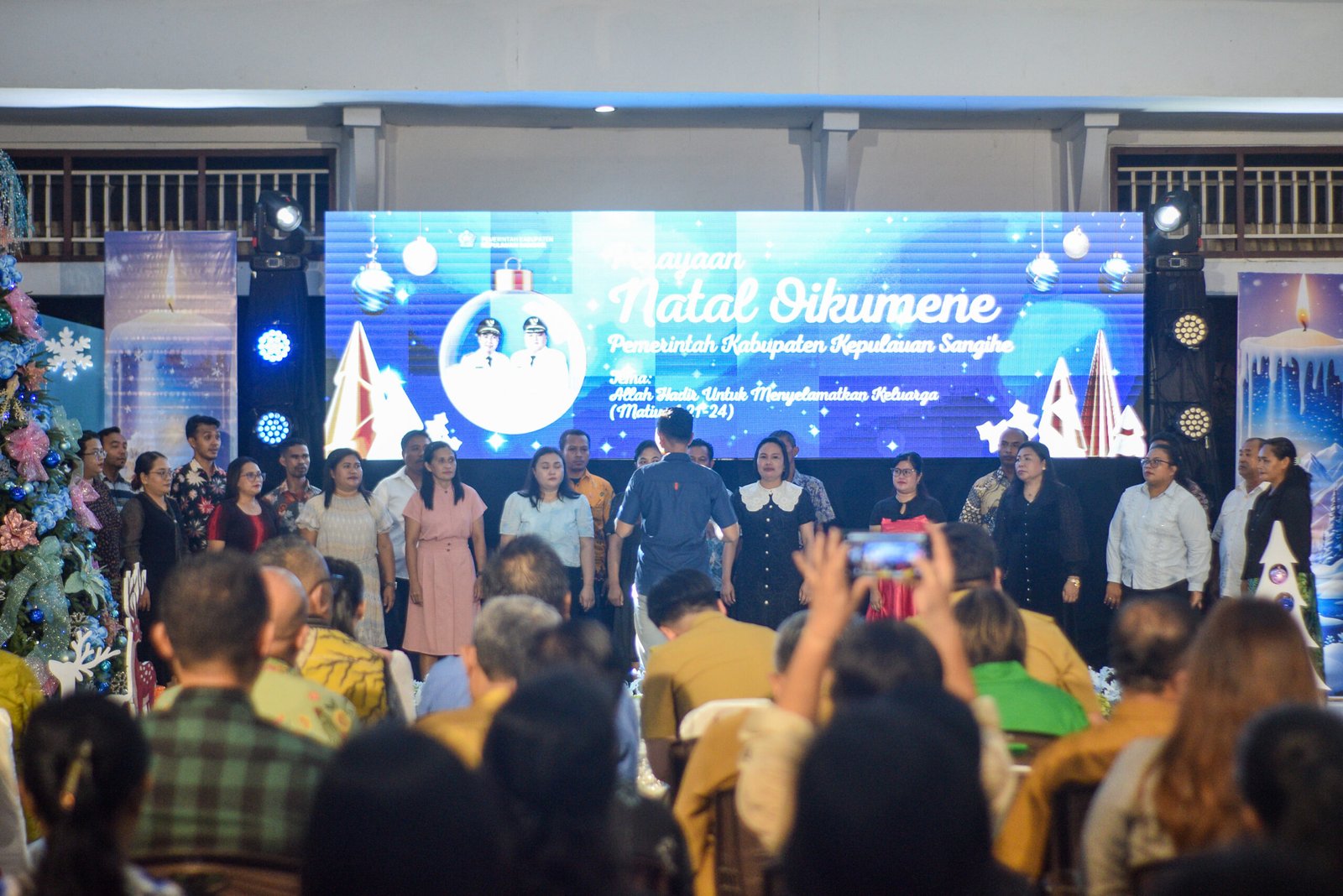 Sangihe, Lintasutara.com – Gelaran Natal Oikumene Kabupaten Kepulauan Sangihe tahun 2025 berlangsung meriah di Papanuhung Santiago Tampungang Lawo, Senin (08/12/2025).